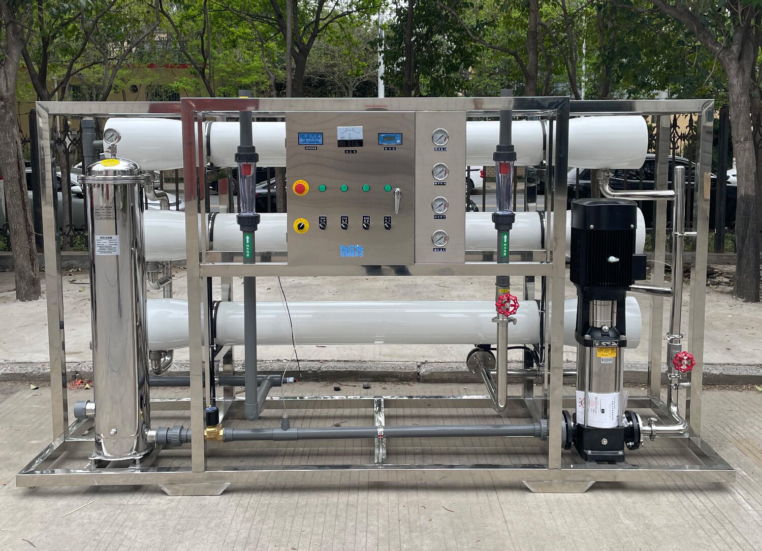1. 核心作用 深度净化水质:采用反渗透(RO)技术,有效去除水中溶解盐类、胶体、有机物、微生物等,产水纯度可达电导率≤10μS/cm(视原水水质而定)。 保障用水安全:过滤后的水质符合《GB 17323-1998 瓶装饮用纯净水标准》或行业特定要求,确保无污染、无有害物质。 节能高效:自动化运行,降低能耗,6吨/小时的产水量可满足中小型企业的稳定用水需求。